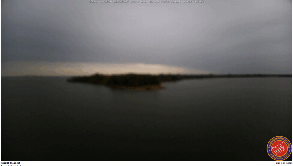 During the almost 5 hour flight (we expected 2-1/2 to 3), the cross-band repeater was the star of the show (especially for those that didn’t give up and stayed for the second rising). It didn’t quite last the entire five hours, but the four that it was running saw lots of traffic from all across the region (Oklahoma to Brownsville). The HD imagery was shrouded in clouds for most of the flight but there were some critical images. We did get at least one confirmed QSO report from the 20M FT-8 tranceiver before it got wet – no doubt we will get a few more.