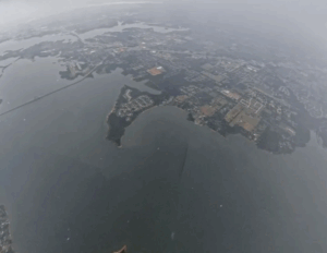 With the long projected flight path, the chase team had to pack and get on the road almost immediately. When the balloon got to about 20,000 feet, it started to drop in altitude, but not rapidly. It didn’t appear that the balloon had popped, but it was sinking and we didn’t know why. Worse, the projected landing was in Lake Lewisville! We had some brief panic and spent an hour in and around the lake watching the balloon descend and wondering if the balloon was going to the water. Ultimately, the payload string dipped into the lake and the balloon dragged the string across to Big Sandy Park, where, inexplicably the balloon began to rise again.